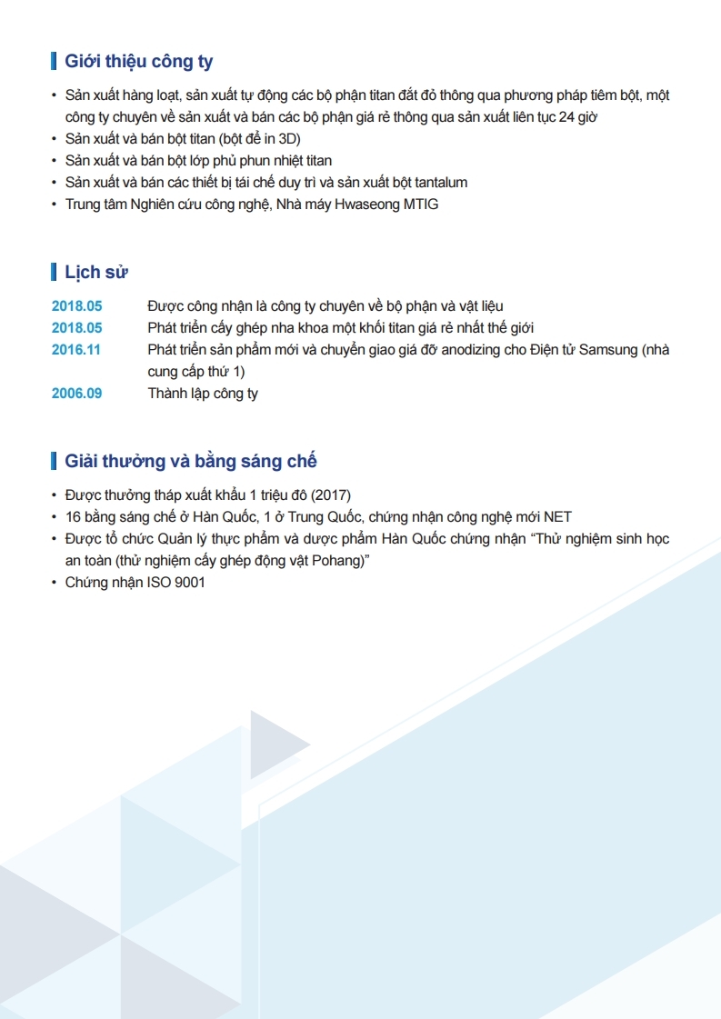 Đây là dữ liệu giới thiệu công ty của MTI.